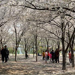 千米樱堤:位于公园东湖东北岸,2015年始建,主要品种为染井吉野及公园自主培育的山樱,花期3月下旬。目前200余株樱花已逐渐形成水岸景观效果。游客由公园东门入园,可以选择沿路穿行其中,也可步行到东湖南岸眺望。 详情>>